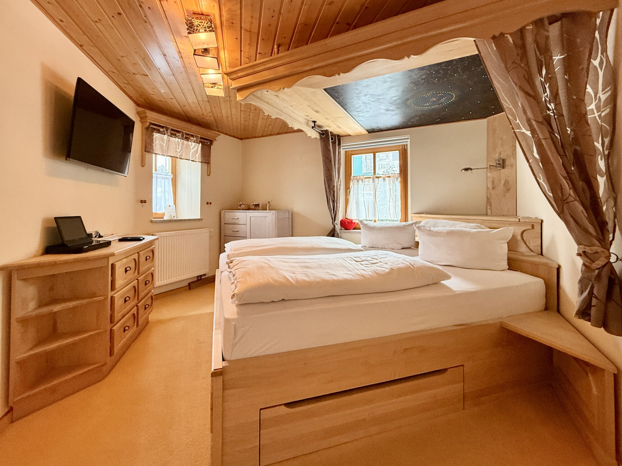 Unsere neue „Bären-Suite“ ist ein sehr umfangreich ausgebauter Dachgiebel für 2-4 Personen + max. 1 Kind. Tolle Annehmlichkeiten, wie ein exklusives Bad, ein Kamin, eine Infrarotkabine, Fernseher in Wohn- & Schlafraum und viele kleine besondere Details machen einen Aufenthalt zum Erlebnis! (In unserer Suite gibt es keine Kinderermäßigungen!)